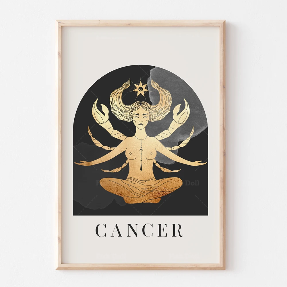 Принт со знаками Водолей и звездами, принт со знаками Зодиака, печа...