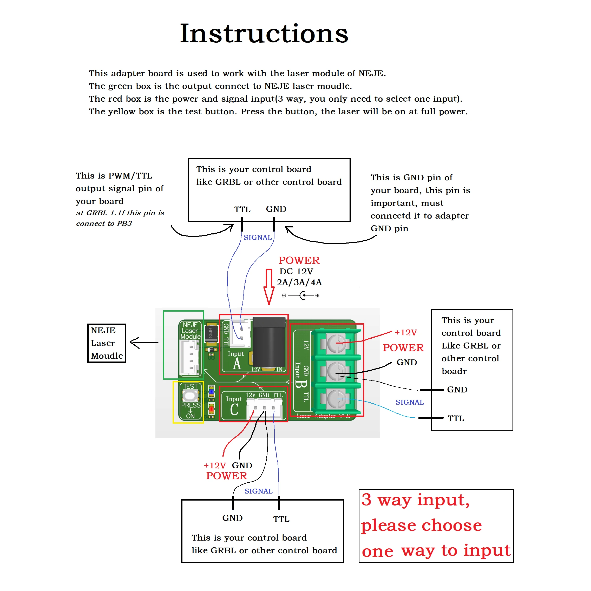 1. Поддержка лазерного модуля 2pin, 3pin, 4pin интерфейс передачи.2. Произведено компанией NEJE, высокое качество.3. Поддержка других брендов лазерного оборудования для использования лазерного модуля NEJE