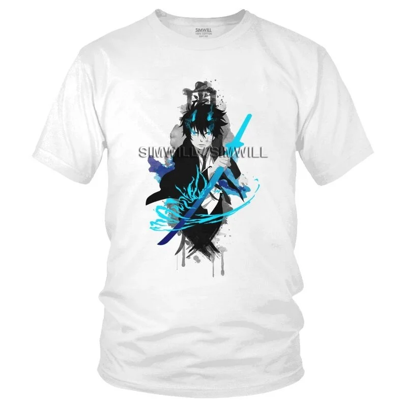 Футболка мужская синяя с рисунком, 100% хлопок, с коротким рукавом, с принтом аниме, принт манга Рин Окумура, идея для подарка