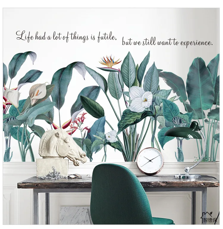 Водостойкая тропическая зеленая Настенная Наклейка с листьями, бана...