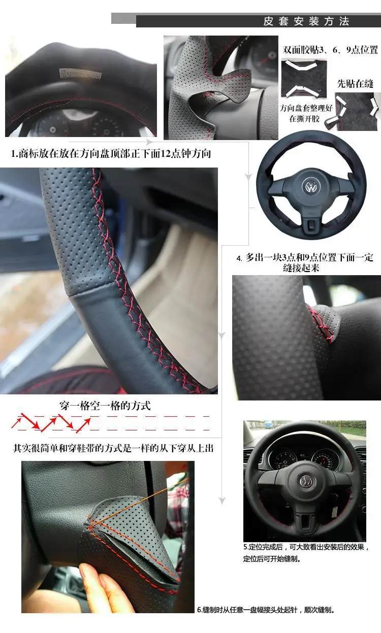 Черная замша чехол рулевого колеса автомобиля для Volkswagen Golf 6...