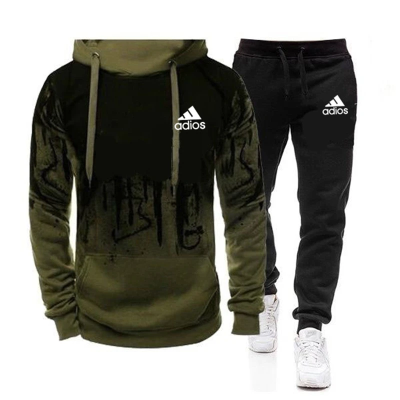 Мужской спортивный костюм, костюм для бега, костюм с толстовкой, мужская толстовка с принтом + брюки, костюм из двух частей для тренировок, спортивная одежда для спортзала, брендовая одежда