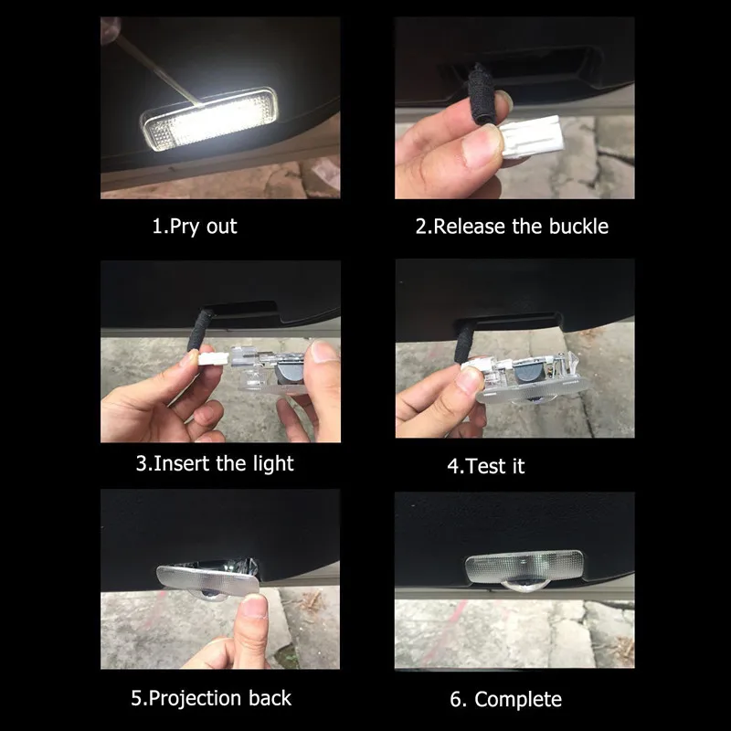 Характеристика:1. Встроенные ограничительные резисторы.2. Высокая эффективность и стабильная производительность.3. Водонепроницаемый и ударопрочный (высокая ударопрочность/вибрация) дизайн.4. Отличный светодиодный чип.5. Отсутствие загрязнения, отсутствие шума, отсутствие электронных помех.6. Легко установить: непосредственно заменить оригинальный дверной светильник, нет необходимости сверлить отверстие, без проводов.