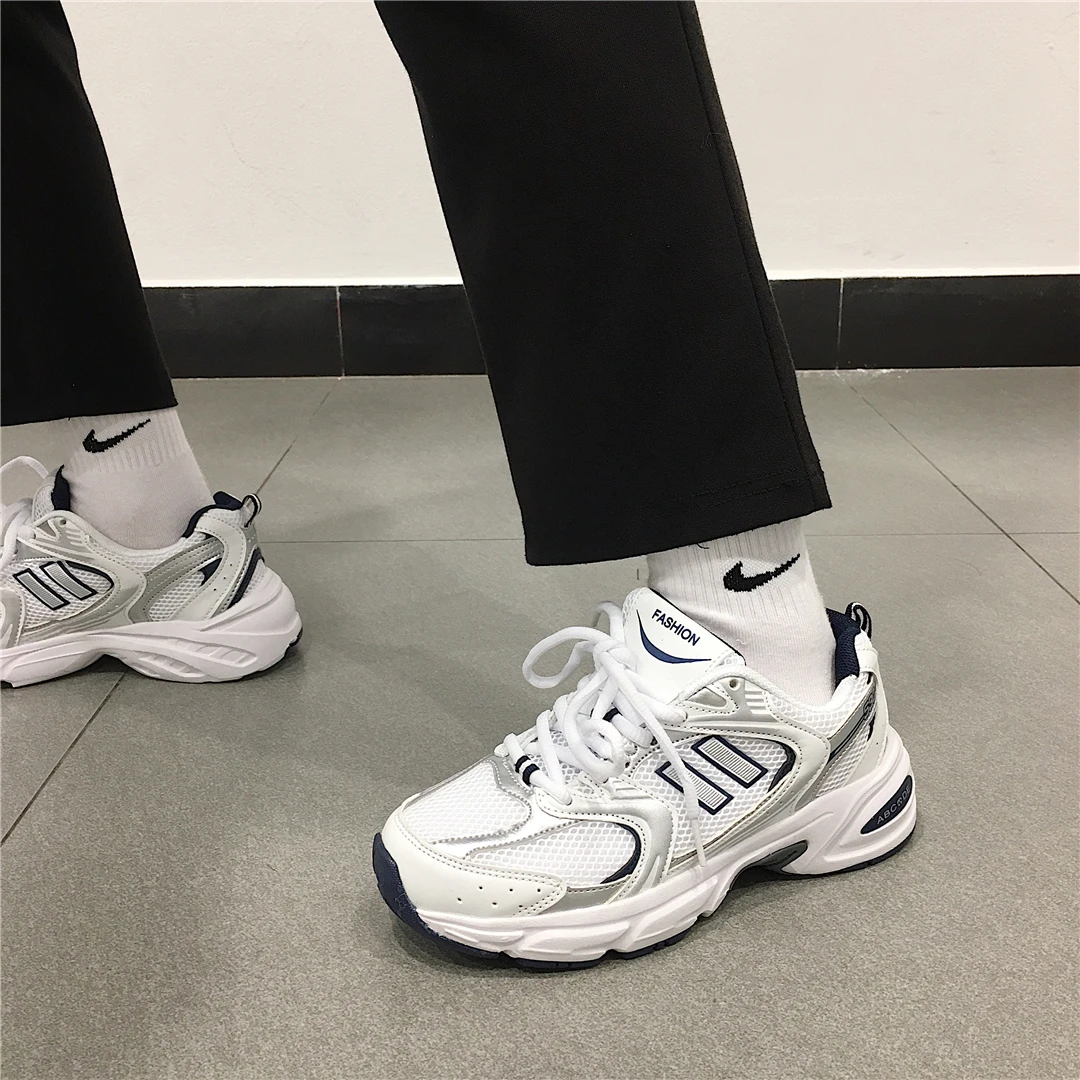 Сетчатые дышащие кроссовки унисекс, повседневная обувь, светоотражающие, на платформе, для бега, новинка весны 2021