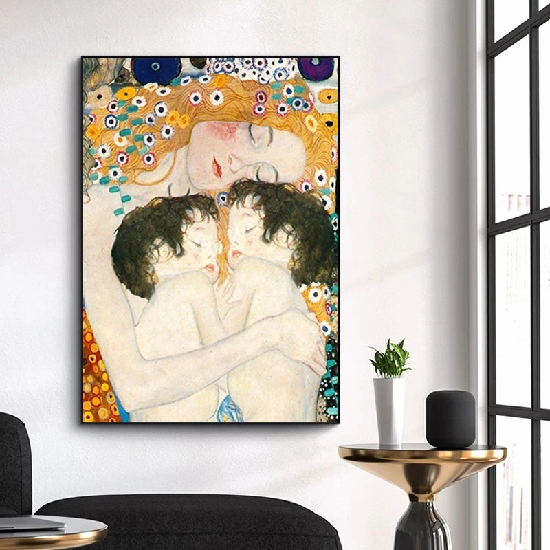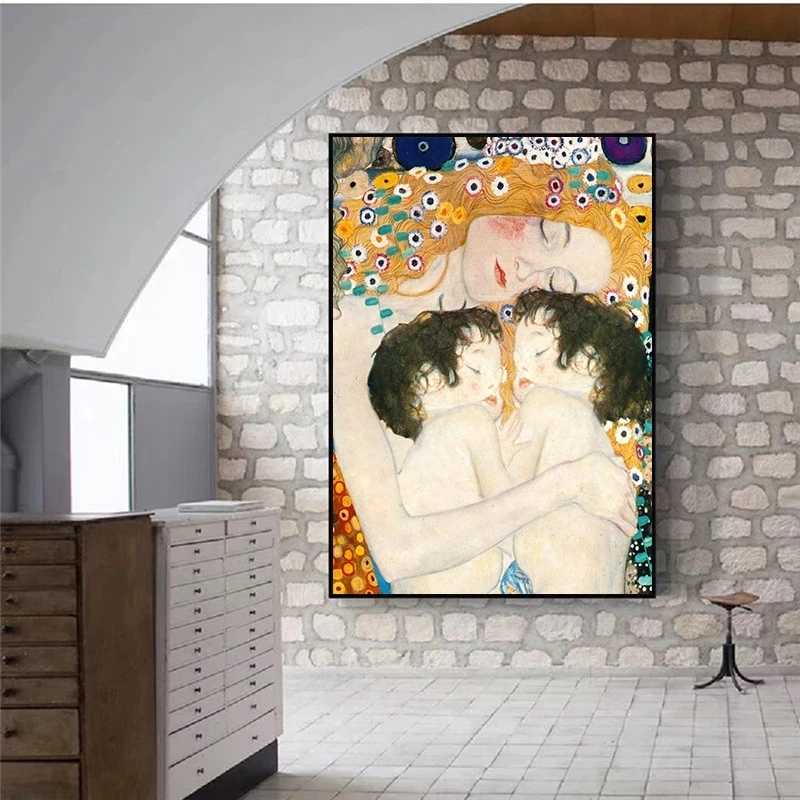 Известное искусство Густав Климт материнская Спящая с близнецами детская картина Репродукция для современных настенных плакатов декоративные картины