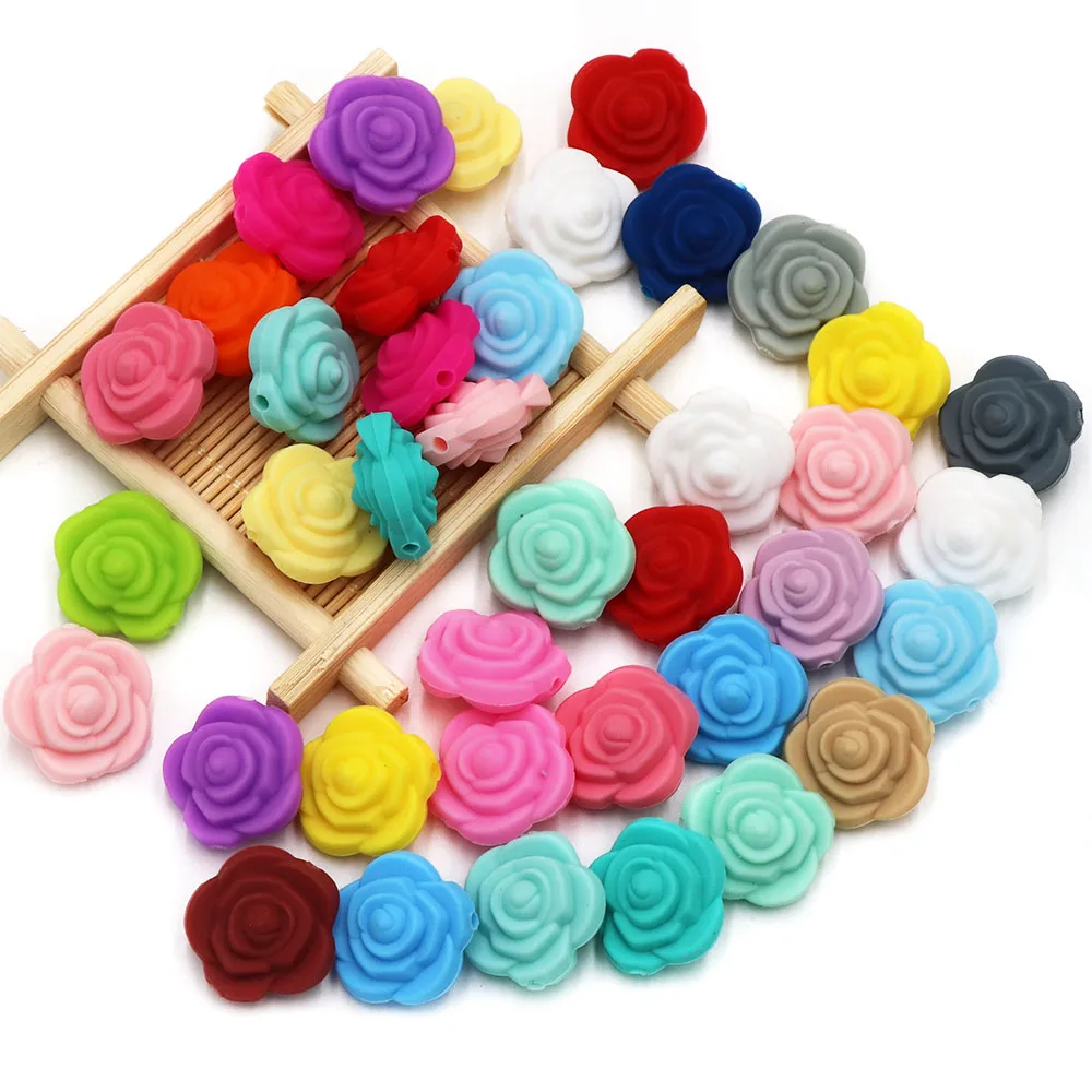 BOBO.BOX 10 шт. Силиконовые Прорезыватели для зубов, бусины с двойным цветком для лица, розовые Детские Прорезыватели, игрушки, пищевое жевательное ожерелье, аксессуары