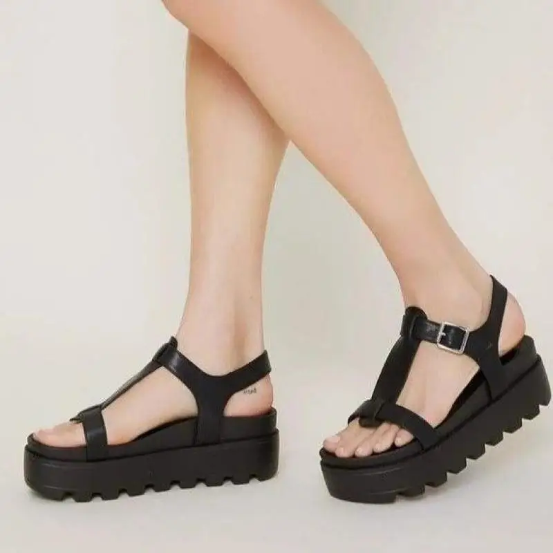 Размера плюс; Большие размеры 36-43; Симпатичные Модные летние женские босоножки, новинка, туфли на танкетке, с открытым носком, с пряжкой, черный, белый цвет Ytmtloy с волнообразным краем; Zapatos De Mujer; Мокасины на платформе