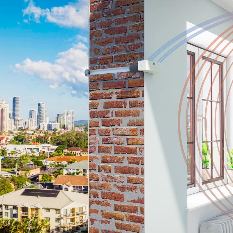 Клапан Norvind Optima применяется для обустройства систем вентиляции в жилых и нежилых помещениях. Вентиляционный клапан данного типа является пассивным устройством для организации притока воздуха, при условии правильно функционирующей естественной или механической вытяжки и отсутствия герметичной преграды между помещениями для свободного движения воздуха. Воздух входит через наружную решетку, проходит по пластиковой трубе че рез стену и попадает в шумопоглотитель вентиляционного клапана, который приводит к поглощению уличного шума и понижает скорость воздушного потока за счет лабиринтной формы, затем воздух проходит очистку за счет встроенного фильтра GЗ и после этого через регулируемую заслонку попадает на радиатор отопления в вертикальном направлении, где нагревается и попадает в помещение, имея температуру близкую к комнатной. Клапан устанавливается целиком над батареей отопления или над трубами отопления.