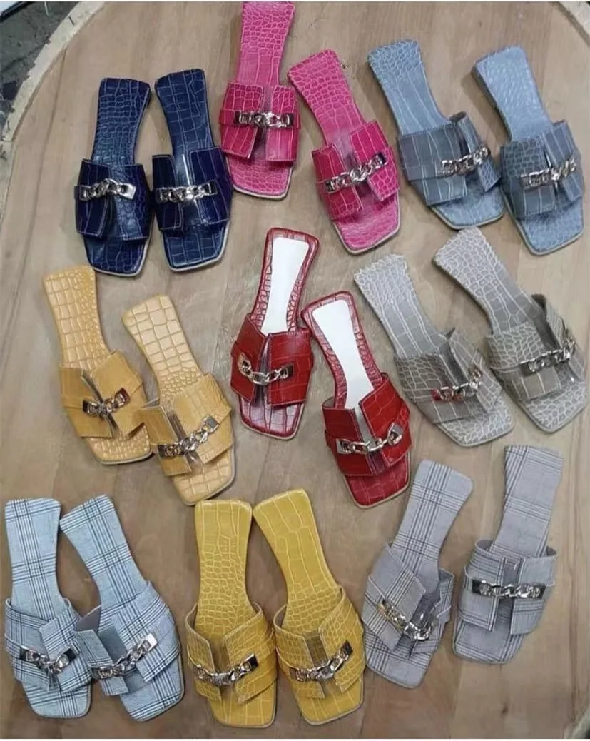 Классические дизайнерские женские шлепанцы, новинка 2021, сандалии с цепочкой и замком, тапочки, женская обувь на плоской подошве, женская обувь