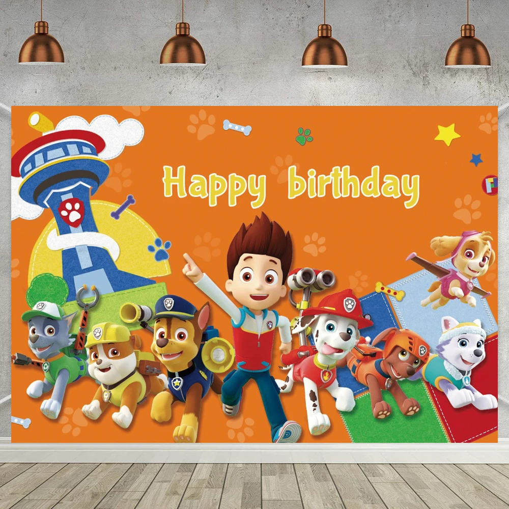 Мультяшные бегущие собаки розовый синий желтый фон для фотографии ридер семейный патруль Дети День Рождения Вечеринка фон Декор для комнаты стола