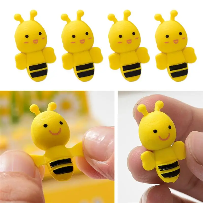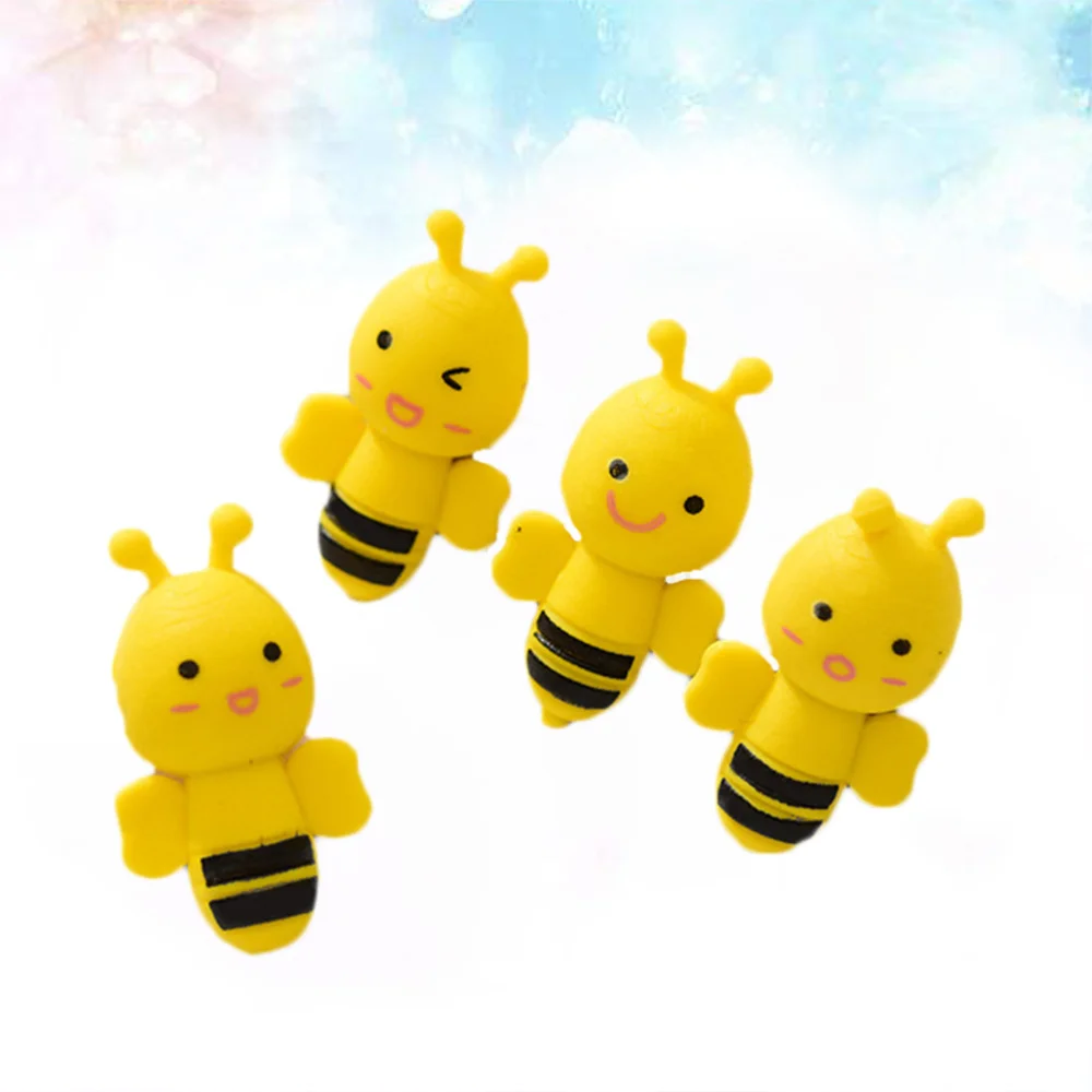4 шт.кор. милые ластики в виде мультяшной пчелы, резиновые школьные...
