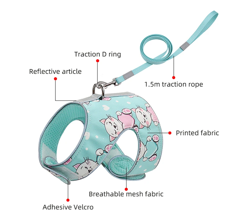 Светоотражающая шлейка с поводком для домашних питомцев, регулируемый нагрудный ремень из сетки, для кошек и собак, принадлежности для домашних животных