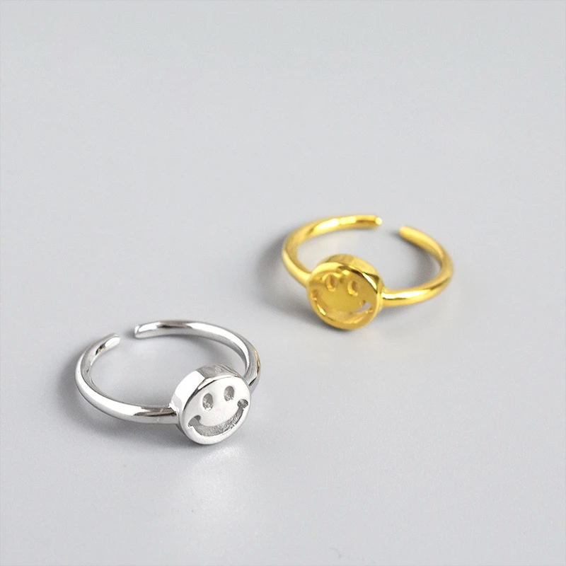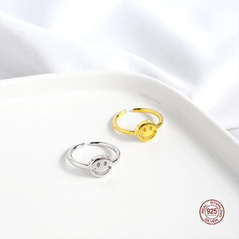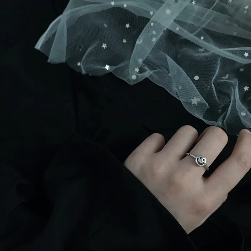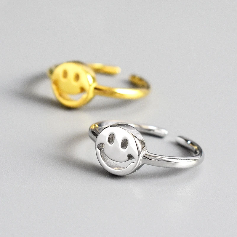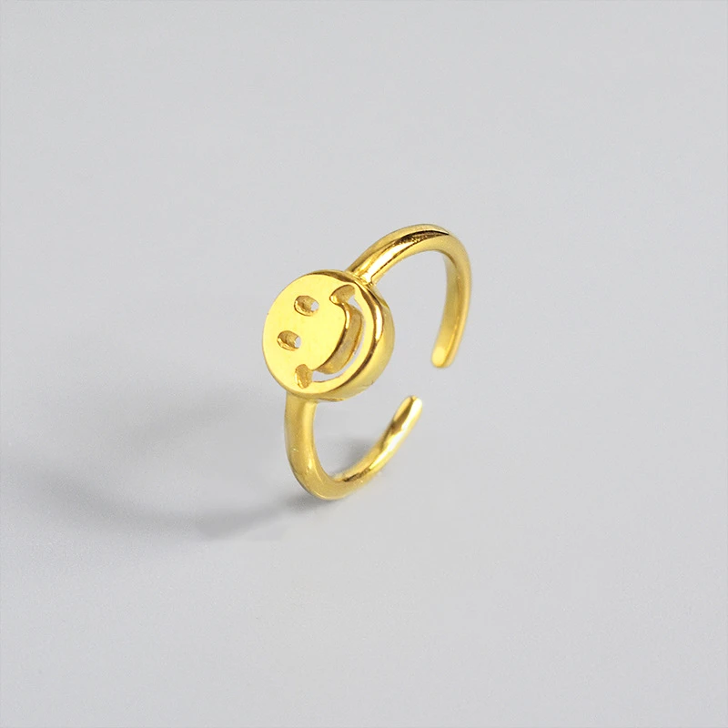 LKO Настоящее серебро 925 пробы, открытое кольцо со смайликом для женщин, креативное кольцо, милое кольцо, полые регулируемые аксессуары для ювелирных изделий
