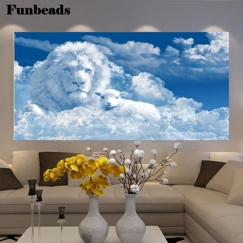 5D алмазная живопись с левом и облаком, полноразмерная вышивка квадратными и круглыми камнями, пейзаж, стразы, искусство FF656