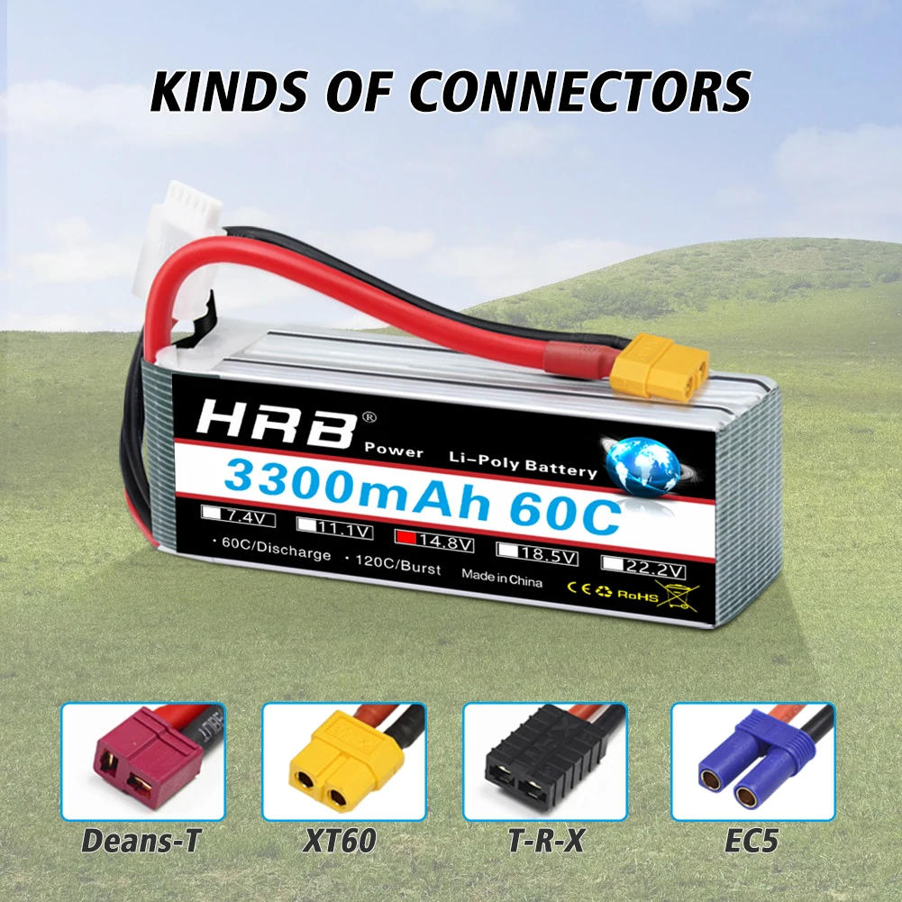HRB 1/2 упаковок Lipo батарея 4S 14,8 V 3300mah 60C T/Deans Разъем XT60 для дистанционного управления Дрон автомобиль Turck лодка самолет