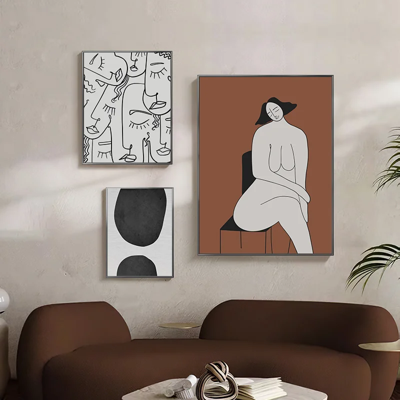 Абстрактное искусство в скандинавском стиле, черно-белые линии, фигурки, оранжевый художественный плакат, украшение для гостиной, живопись, холст, роспись, картина, печать