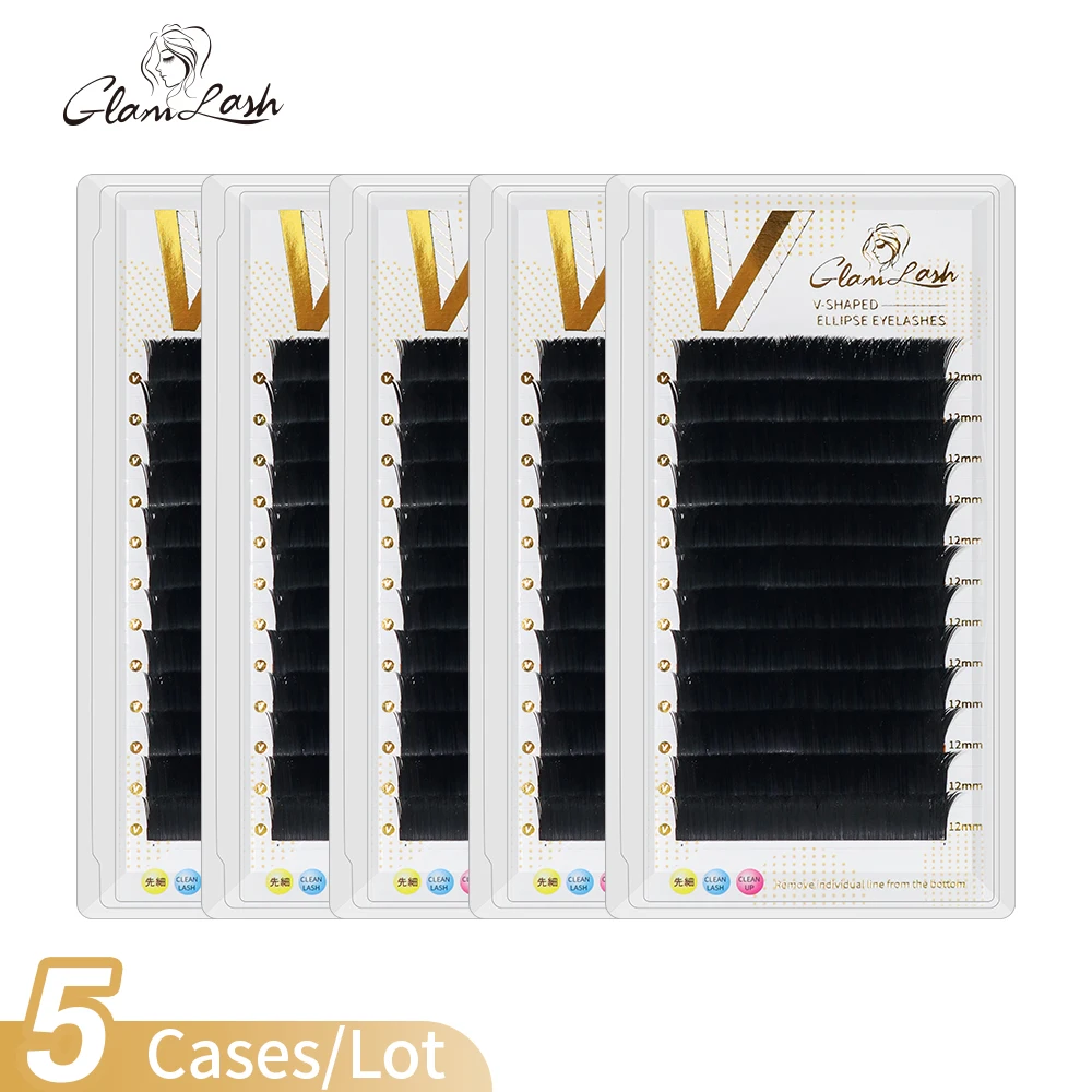Ресницы для наращивания GLAMLASH, V-образные, с функциями 2D ресницы, мягкие Эллипсы, плоские Раздвоенные, готовые объемные, Индивидуальные Накладные ресницы, 5 коробок