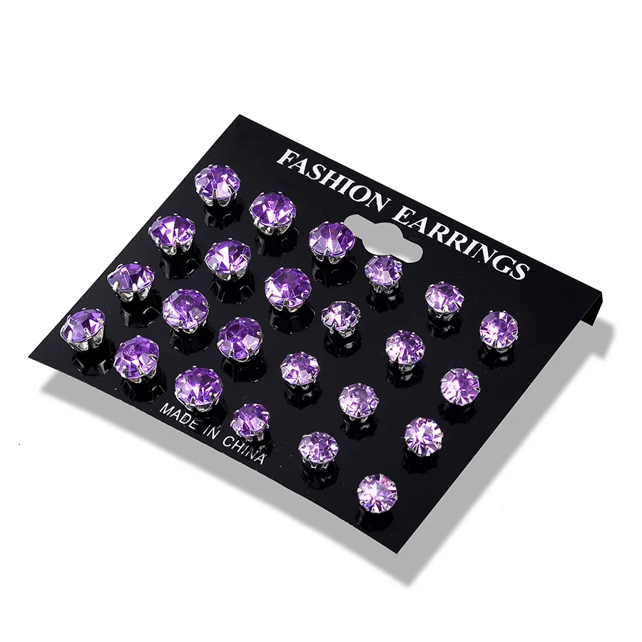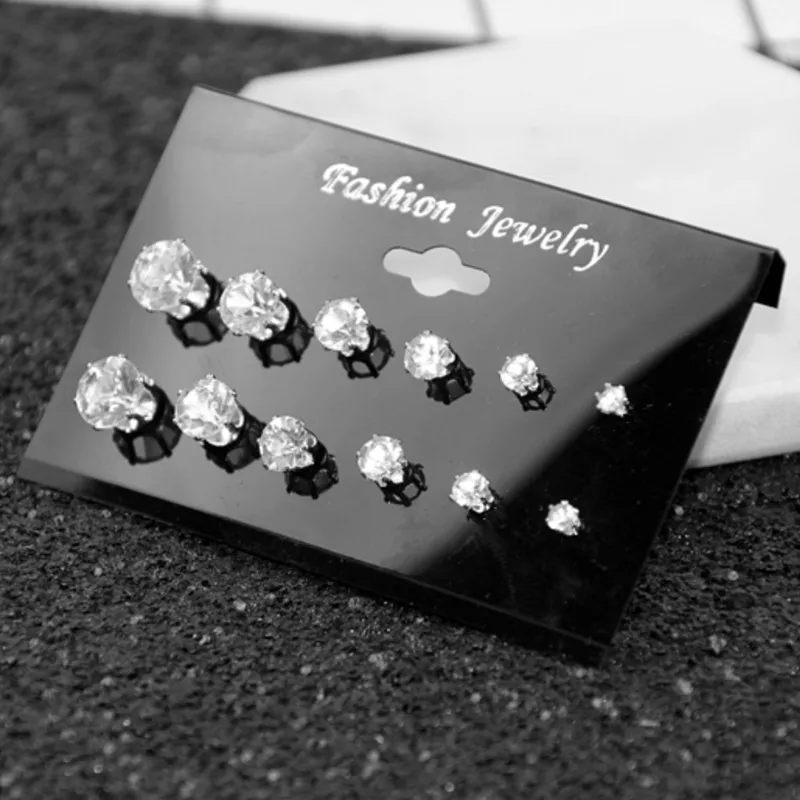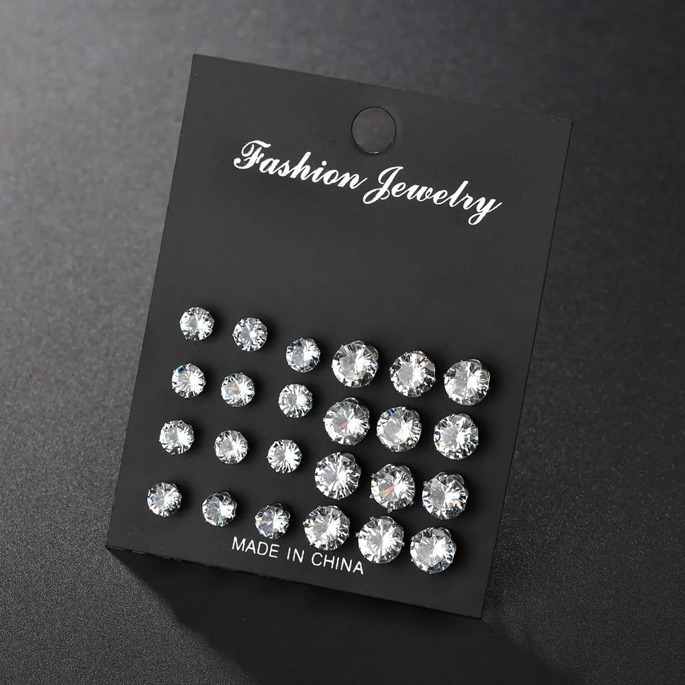 Серьги-гвоздики с кристаллами, 12 пар, элегантные женские серьги Ст...