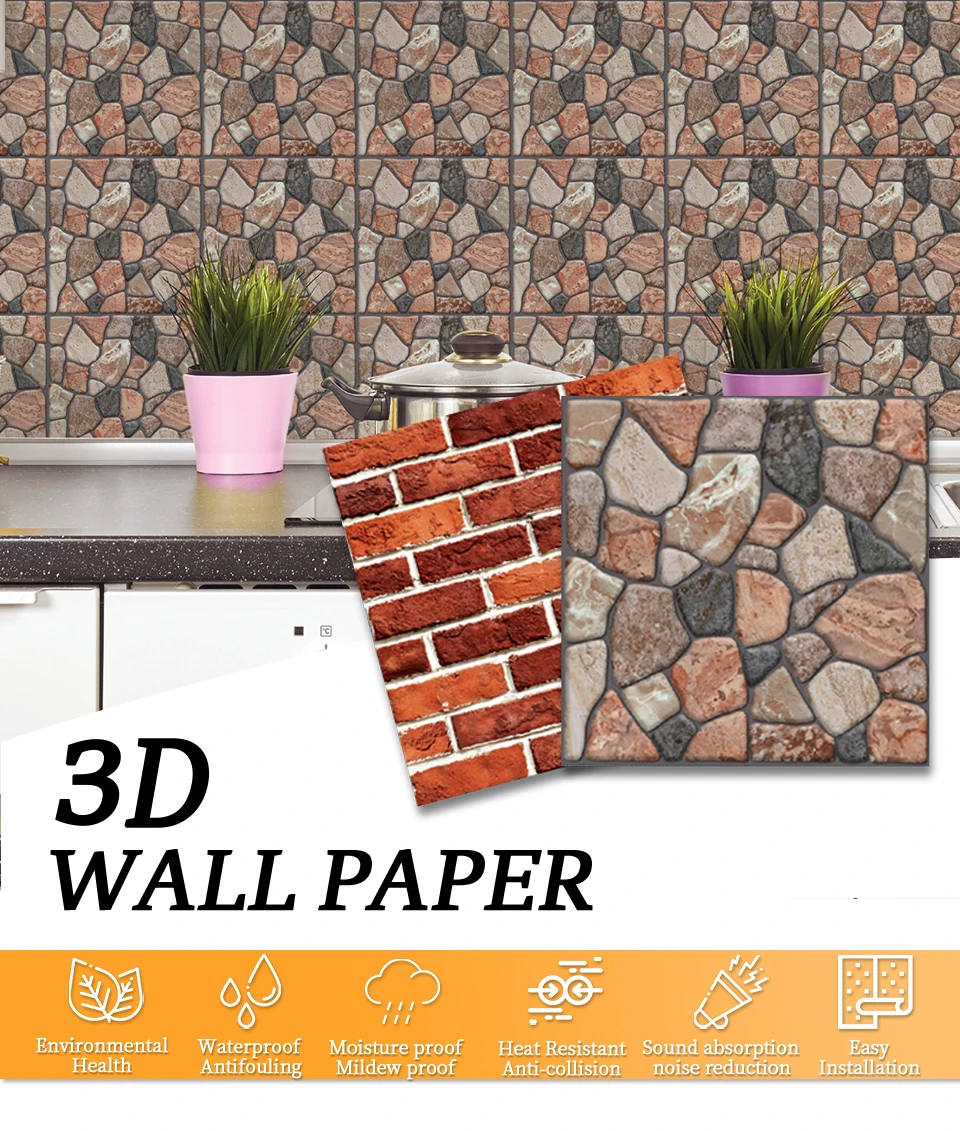 1 шт.5 шт 3D стены Бумага кирпичная стена наклейки Водонепроницаемый DIY самоклеящийся декор для Спальня детской комнаты Обои в гостиную Бумага
