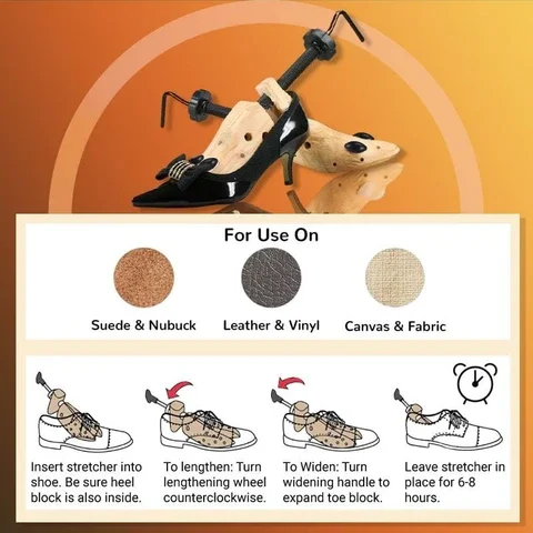 Простота в использованииНосилки для сапог для женщин и мужчин просто вставьте в сапоги, а затем поверните ручку по часовой стрелке, чтобы начать растягивать сапоги. ОставьтеНосилки для обуви на ночь или в течение 12-24 часов.