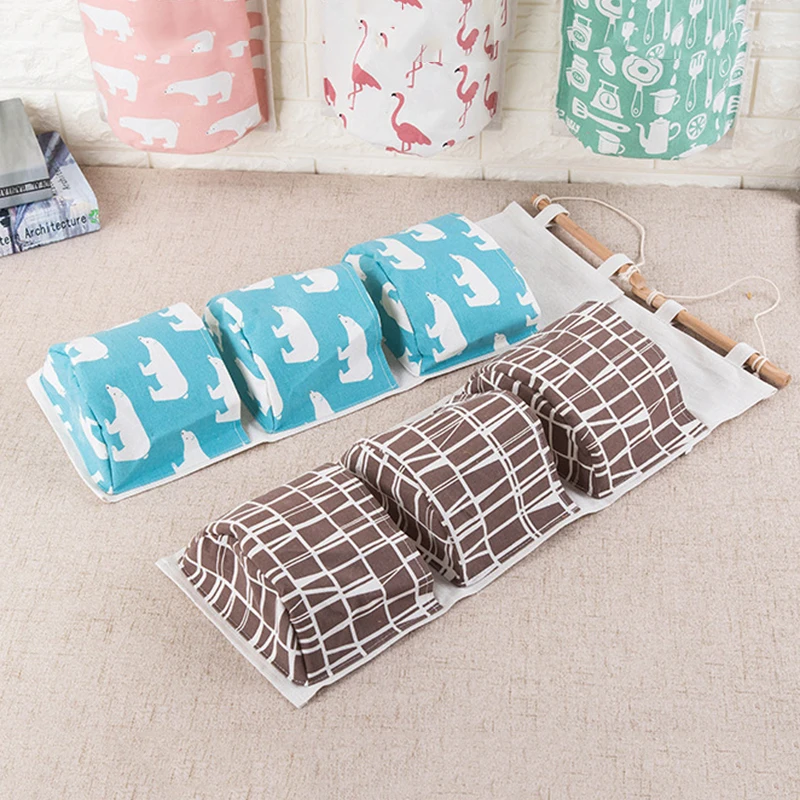 Висячая сумка для хранения из хлопка и льна, 3 кармана, настенный органайзер для гардероба, сумочки, косметики, игрушек