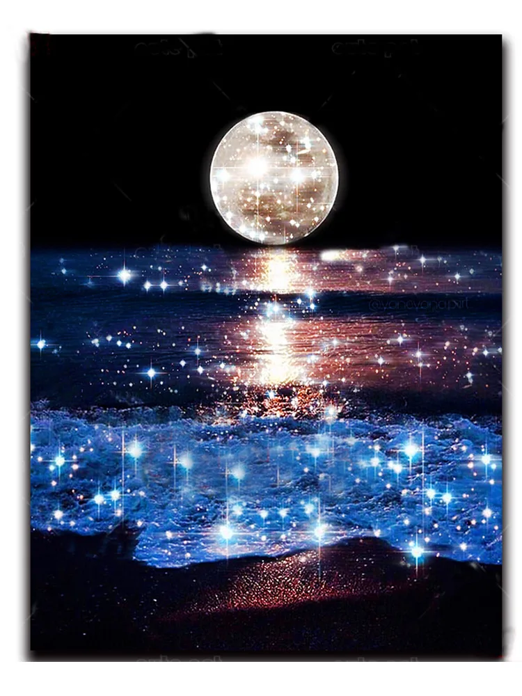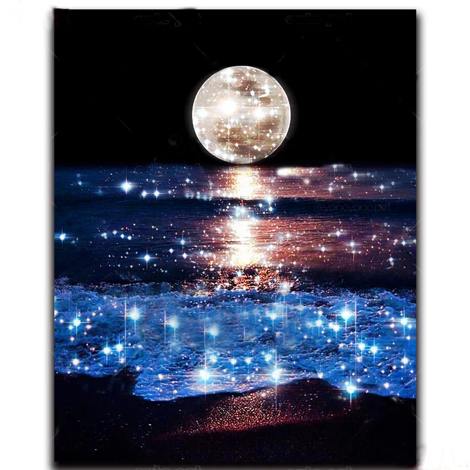 5d diy алмазная живопись, сверкающая луна, морские волны, фотография, фотография