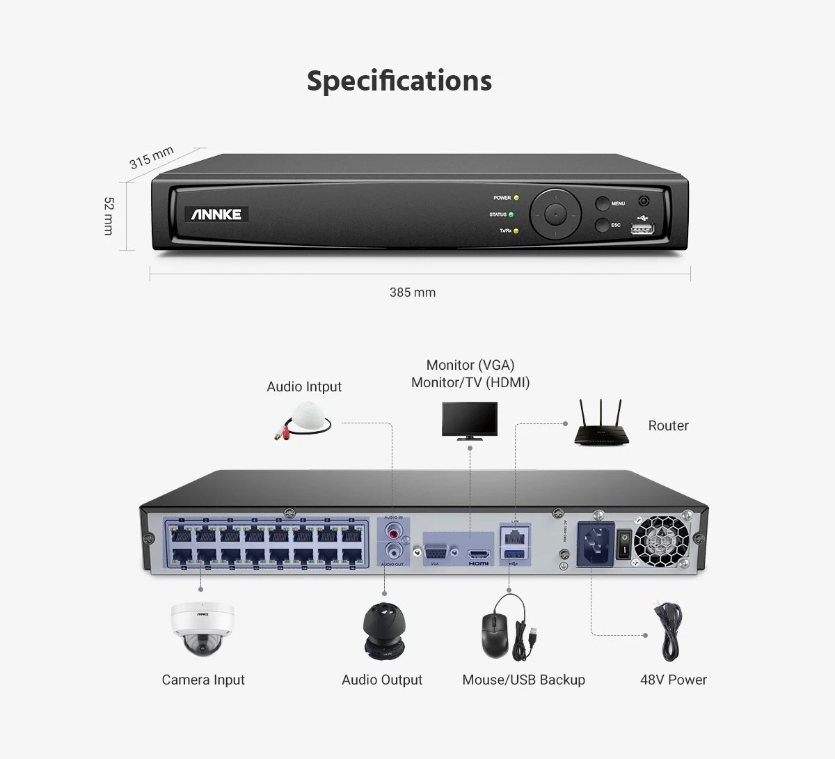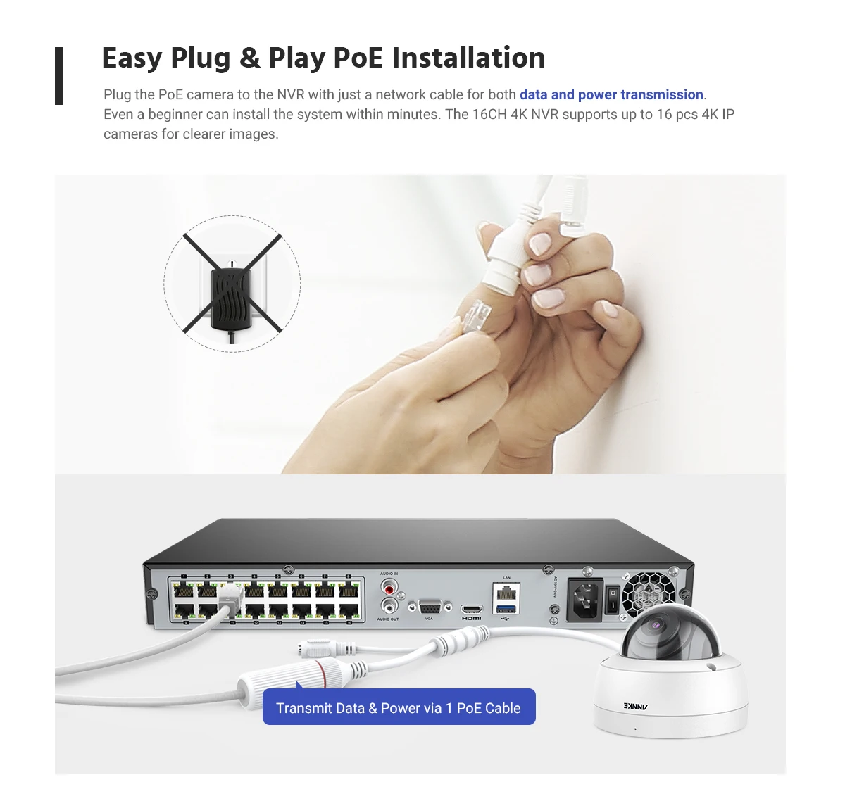 Сетевая система видеонаблюдения ANNKE, 16 каналов FHD 5 Мп POE, сетевой видеорегистратор H.265 + 6 МП, 12 водонепроницаемых камер наблюдения 5 Мп POE с аудио входом