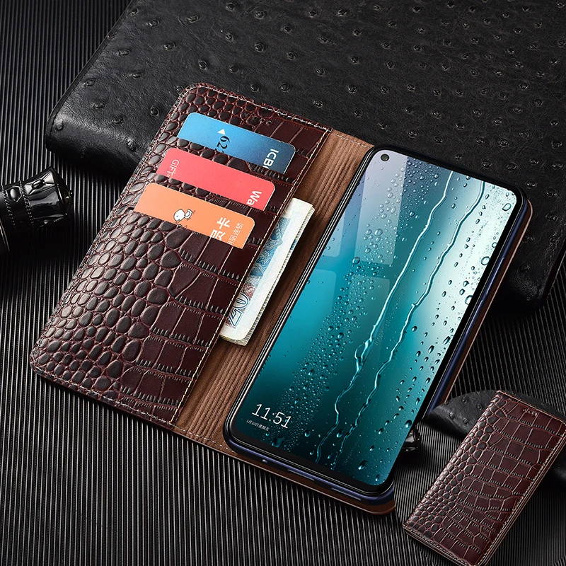 Чехол из натуральной кожи с крокодиловой жилой для OPPO Realme 7 8 ...