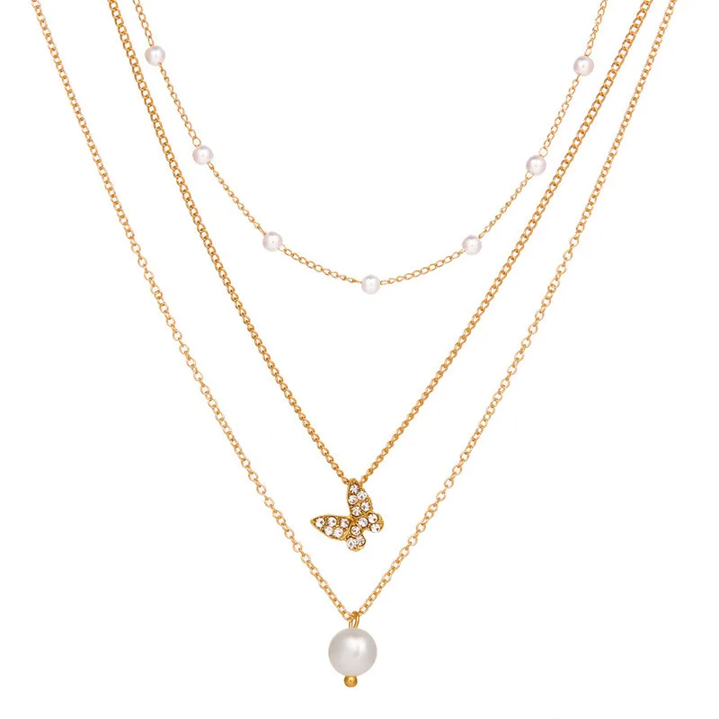 Ожерелье женское, многослойное, золотистое, с бабочкой и жемчугом, 2021