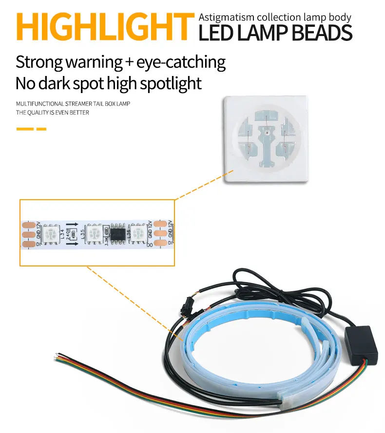 (При вождении светильник белый, при повороте он постоянно течет желтым цветом)