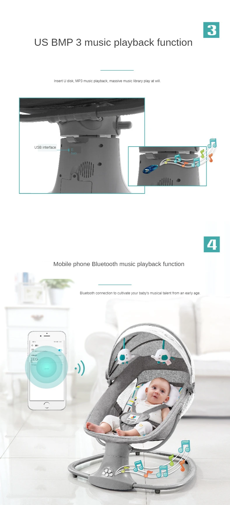 Детское кресло-качалка, Электрическое Кресло-Качалка для детей 0-3 лет