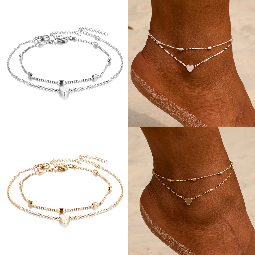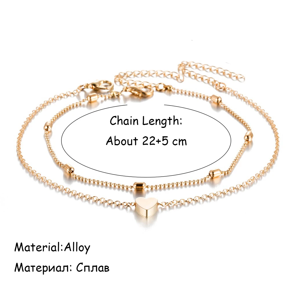 Браслеты на ногу женские VAGZEB, анклеты с простым сердцем, ножная ...