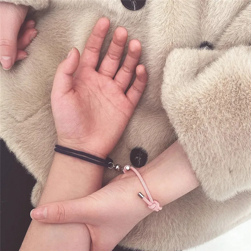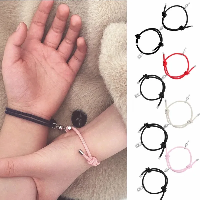 2021 тренд 2 шт. Пара Браслеты на руку для мужчин и женщин Шарм Lock, сплетеный расстояние магнитный браслет Lover Веревка Ювелирные изделия