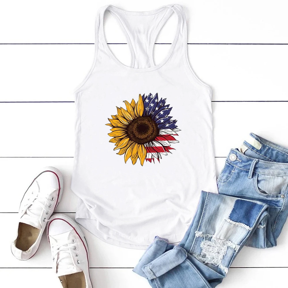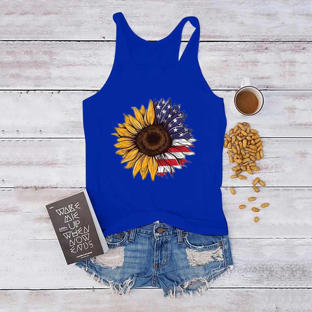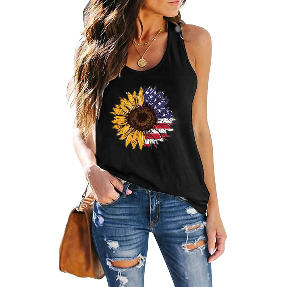 Забавные женские майки с американским флагом подсолнухом, повседневный Свободный Летний жилет без рукавов с круглым вырезом для дам, Y2k, Женский Топ 2021