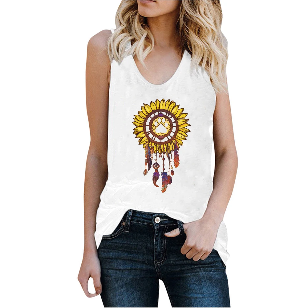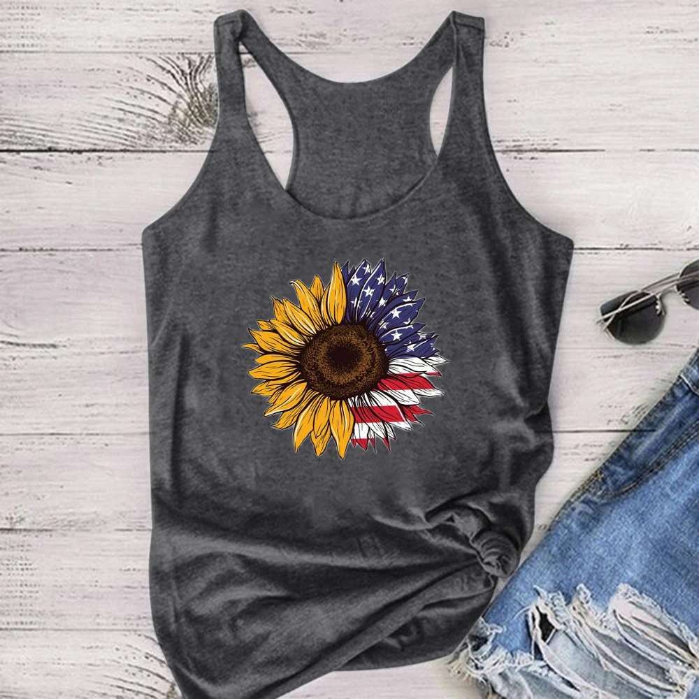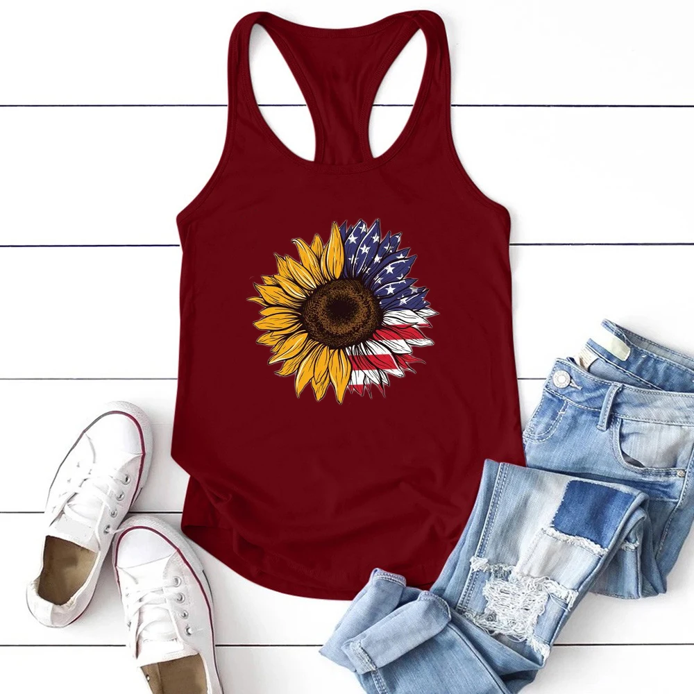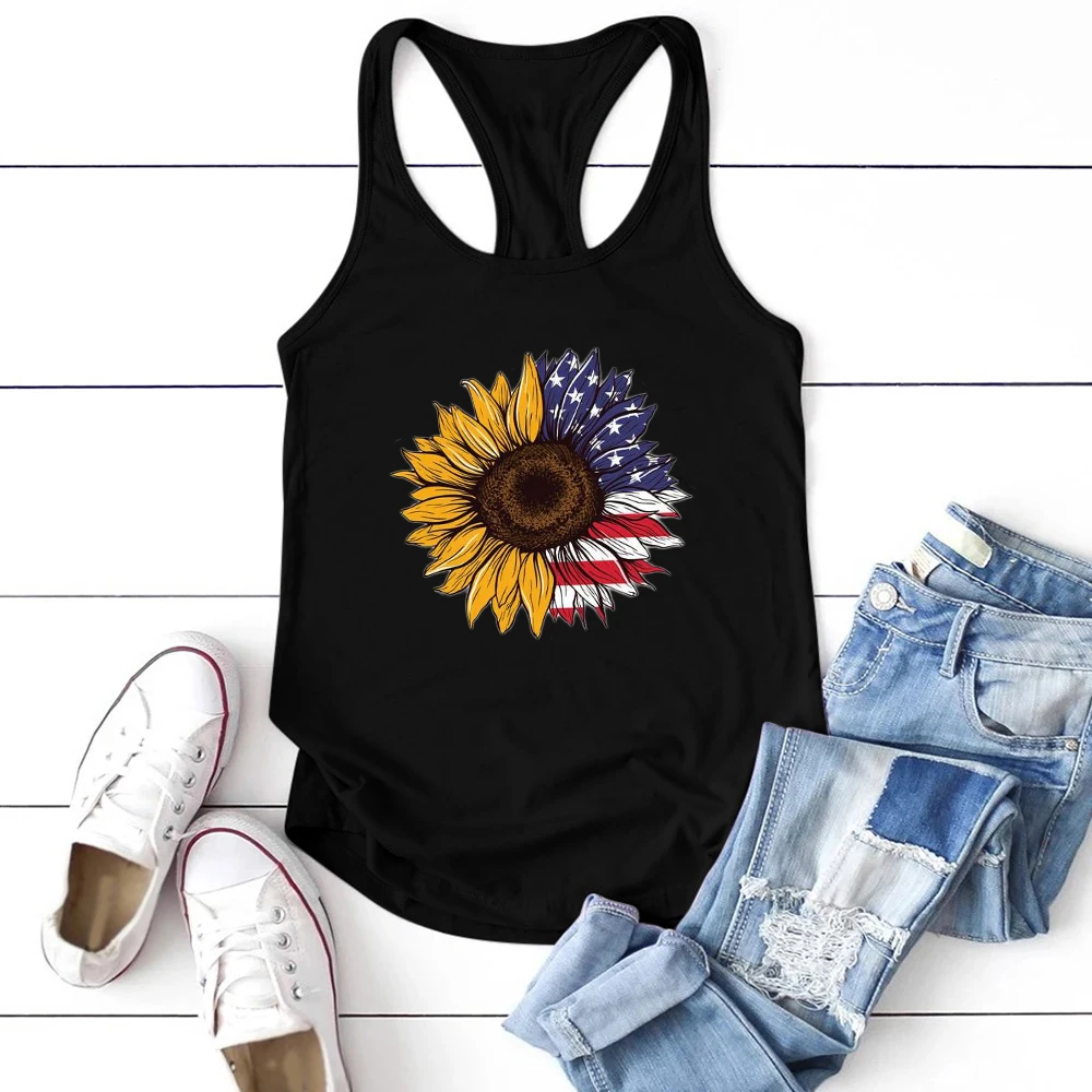 Забавные женские майки с американским флагом подсолнухом, повседневный Свободный Летний жилет без рукавов с круглым вырезом для дам, Y2k, Женский Топ 2021