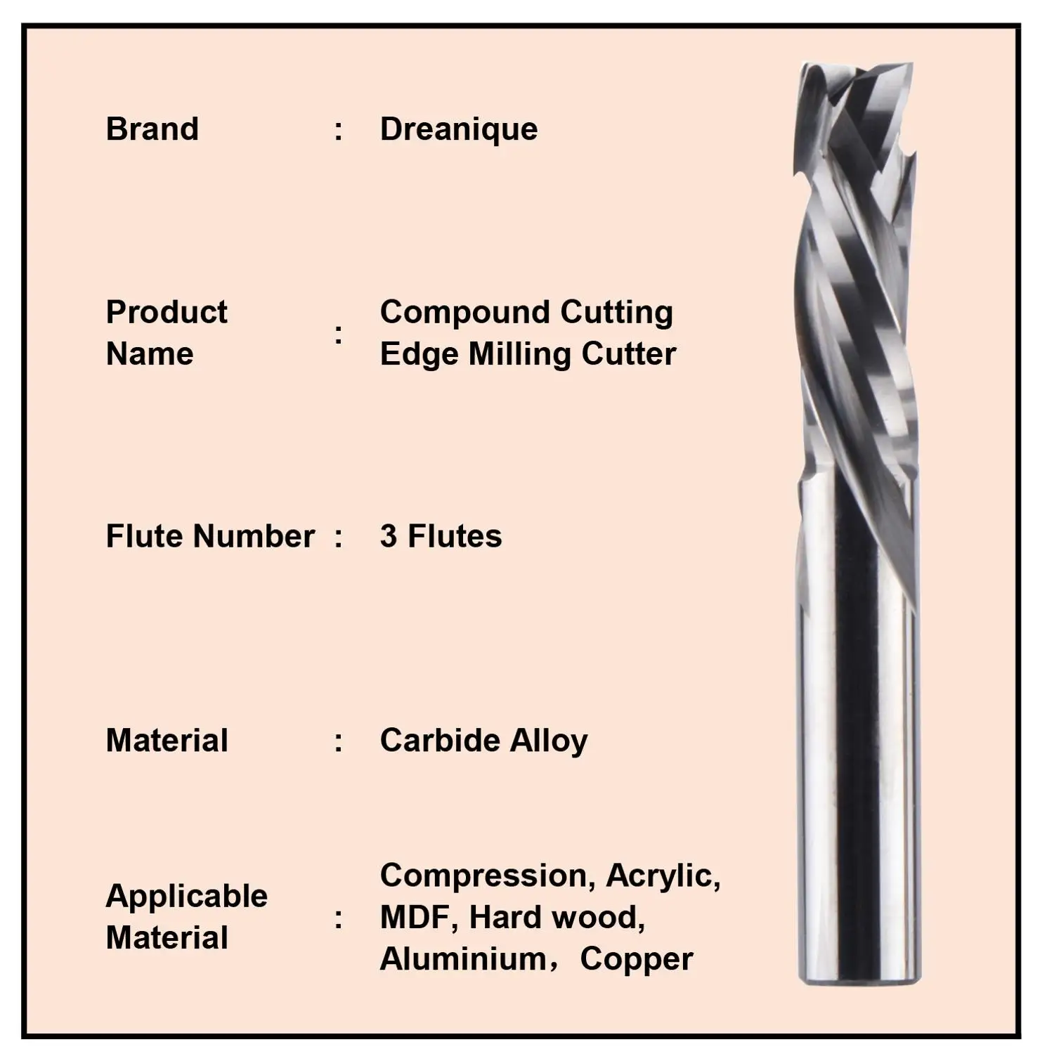 Компрессионный Фрезерный резак drenick, деревообрабатывающий фрезерный станок с 3 канавками, спиральный инструмент с ЧПУ, твердосплавная концевая фреза, фрезы