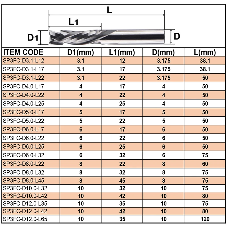 cutting diameter3.175mm 4mm 5mm 6mm, 8mm, 10mm