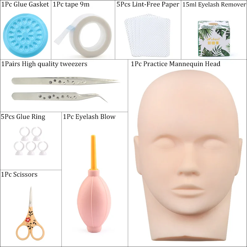 [1] 1 шт. * Черная косметичка[2] 5 пар * тренировка накладных ресниц[3] 1 шт. * стикер для глаз[4] 1 шт. * Серебряный Клей стикер[5] 1 шт. * 8 мл клей для ресниц[6] 1 шт. * Нетканая лента 9 м[7] 1 шт. * 5 мл средство для удаления ресниц[8] 1 шт. * бумажные патчи[9] 1 шт. * голова-манекен для практики[10] 5 шт. * клеевое кольцо[11] 5 шт. * Безворсовая бумага[12] 5 шт. * клеевая прокладка[13] 1 шт. * Клей-лоток для ресниц[14] 1 шт. * Клей[15] 1 пара * Пинцет высокого качества[16] 5 шт. * микро кисть[17] 5 шт. * кисть для губ[18] 5 шт. * Кисть для ресниц[19] 1 шт. * выдувание ресниц[20] 2 шт. * ресницы (c0.10 мм и c0.12 мм)