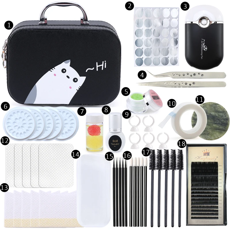 [1] 1 шт. * Черная косметичка премиум класса[2] 1 шт. * Серебряный Клей стикер[3] 1 шт. * Вентилятор Blcak[4] 1 пара * Пинцет высокого качества[5] 1 шт. * 5 мл средство для удаления ресниц[6] 5 шт. * клеевая прокладка[7] 1 шт. * Пинцет для жидкого клея[8] 1 шт. * 8 мл клей для ресниц[9] 5 шт. * клеевое кольцо[10] 1 шт. * Нетканая лента 9 м[11] 1 шт. * Клей[12] 5 шт. * Безворсовая бумага[13] 5 шт. * нетканый пластырь для глаз[14] 1 шт. * белая наклейка на лоб[15] 5 шт. * микро кисть[16] 5 шт. * кисть для губ[17] 5 шт. * Кисть для ресниц[18] 1 шт. * ресницы (стиль ресниц отправляется случайным образом)