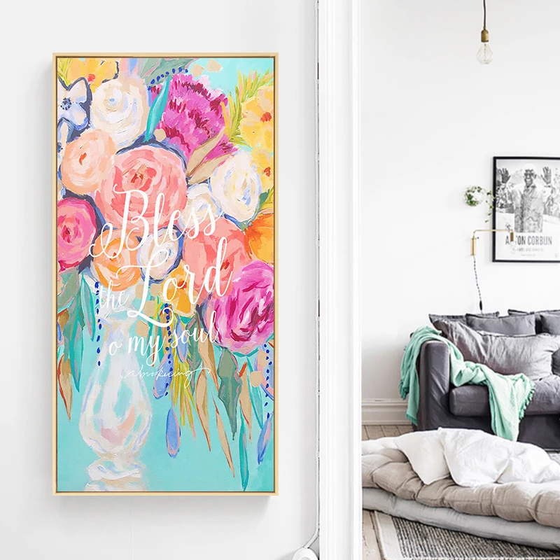 Современная Скандинавская картина маслом, печатная на холсте, настенный плакат, красочные цветы, Настенная картина для гостиной, большое украшение для дома