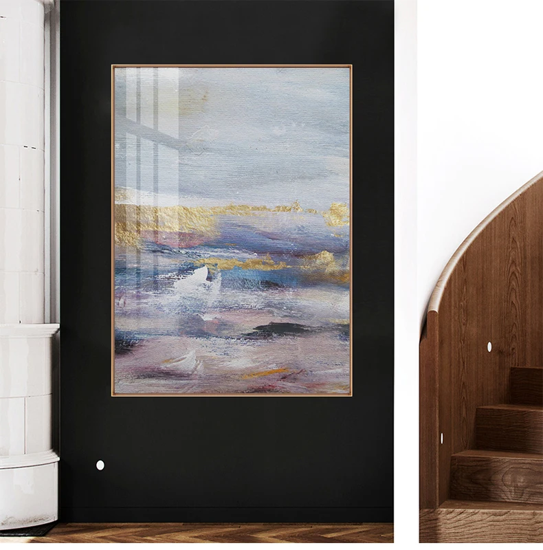 Абстрактный пейзаж, настенная живопись на холсте, розовый небесно-г...