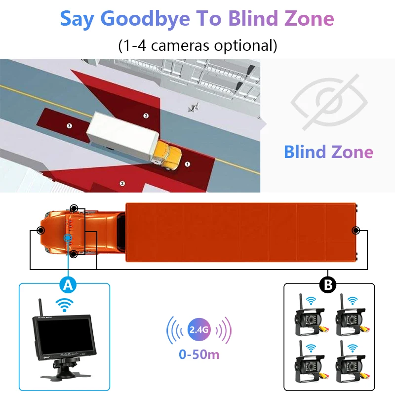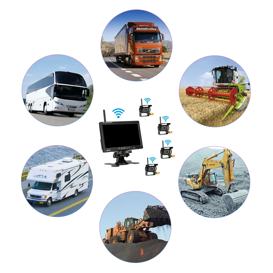 Характеристика: 7-дюймовый высокой четкости на тонкопленочных транзисторах на тонкоплёночных транзисторах ЖК-дисплей широкоэкранный дисплей -Беспроводной сигнал позволяет избежать утомительного соединения между камерой и дисплеем -Дальнее расстояние приема в открытой местности, отсутствие помех в открытой местности, обеспечение стабильной передачи изображения расстояние: 0-50 м -Простая установка-Беспроводная парковочная помощь; Монитор автоматически начнет и отобразит видео камеры заднего вида синхронно при реверсе -Напряжение подходит для 12 В-24 В, подходит для грузовиков, грузовиков, экскаваторов, кранов, комбайнов, бульдозеров. -Оснащен датчиком инфракрасный светильник, автоматический светильник-зондирование, 18 инфракрасный светильник s автоматически включается в ночное время, будь то Вождение ночью или парковка на боковой стороне дороги, это безопаснее, И он может быть четко виден даже в совершенно темной среде