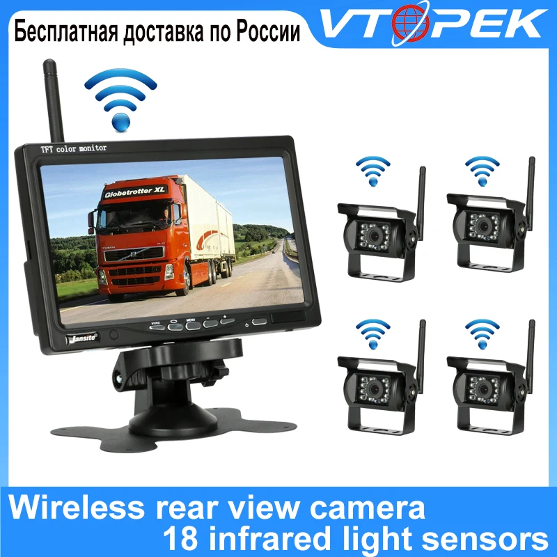 Vtopek 7 дюймов Автомобильный Монитор Дисплей Беспроводной заднего вида Камера парковки Системы обратный Камера Ночное видение для автобуса автомобиля Vans RV