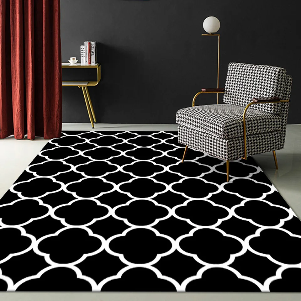 Черно-белый ковер, коврик для гостиной, решетка, коврик для спальни, прикроватный коврик, журнальный столик, стул, ковер, простой декор комнаты