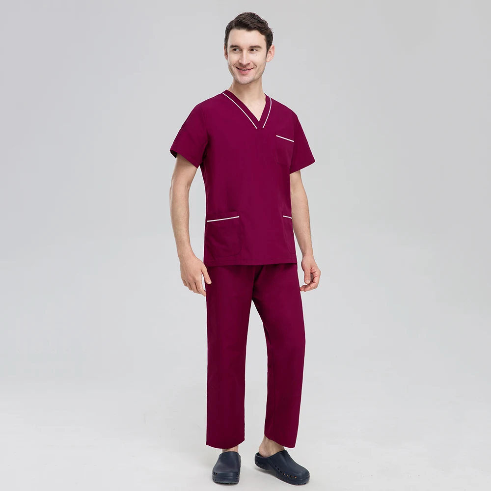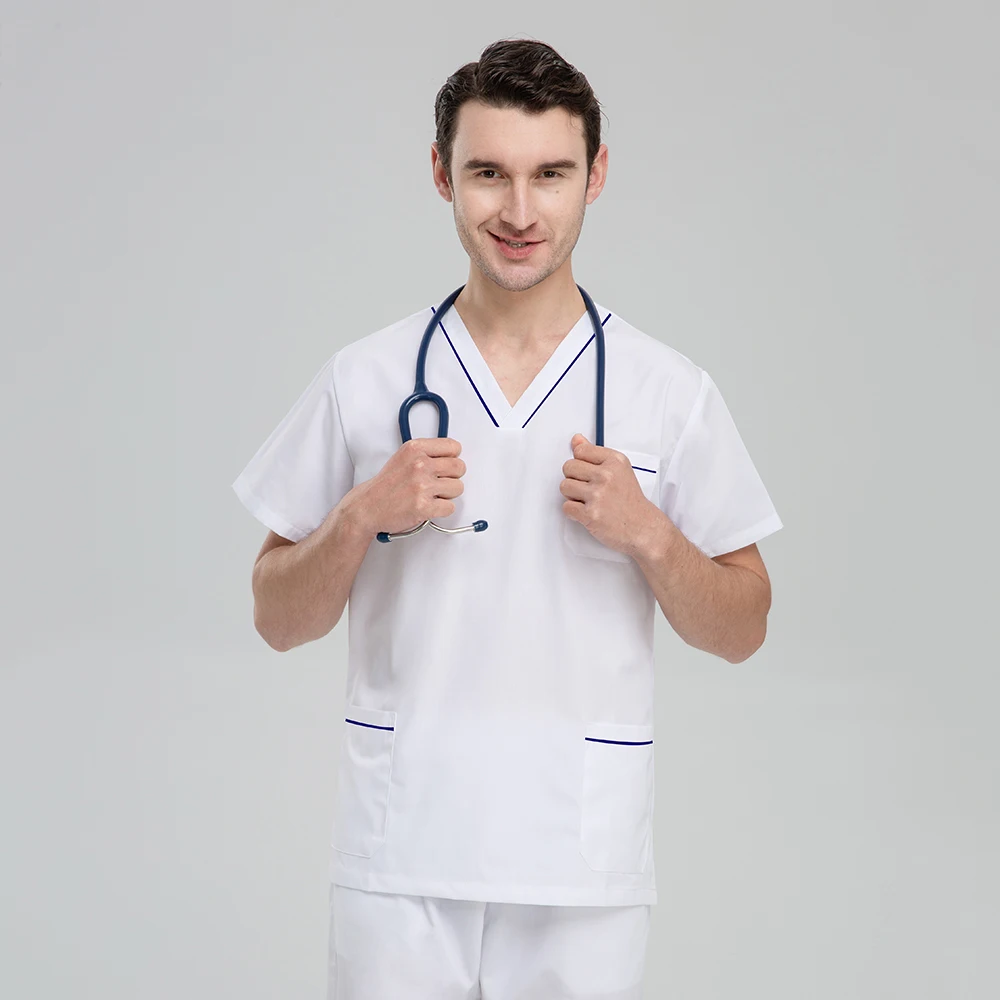 Набор больничных скрабов для мужчин, Классический Топ с коротким ру...