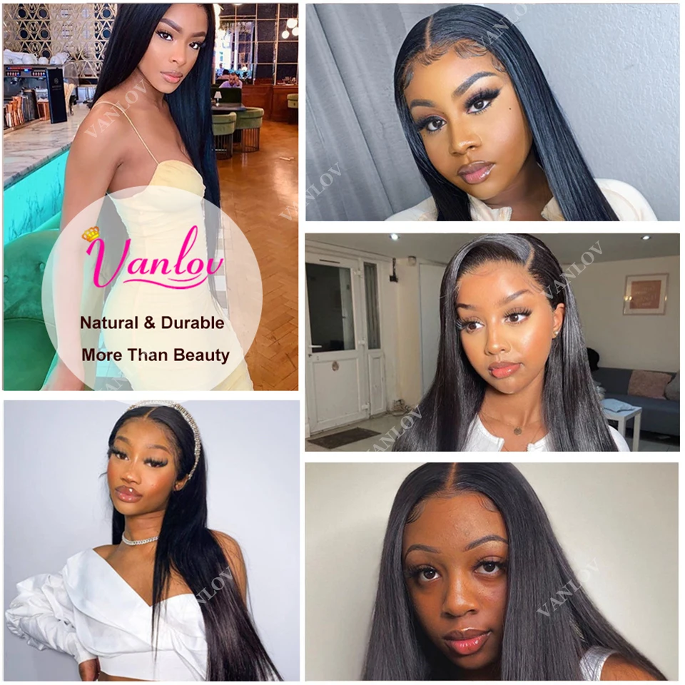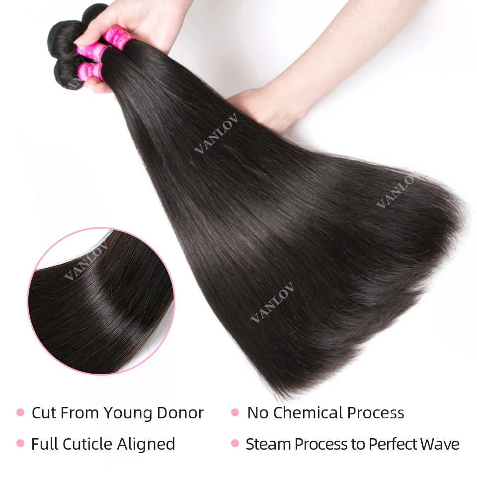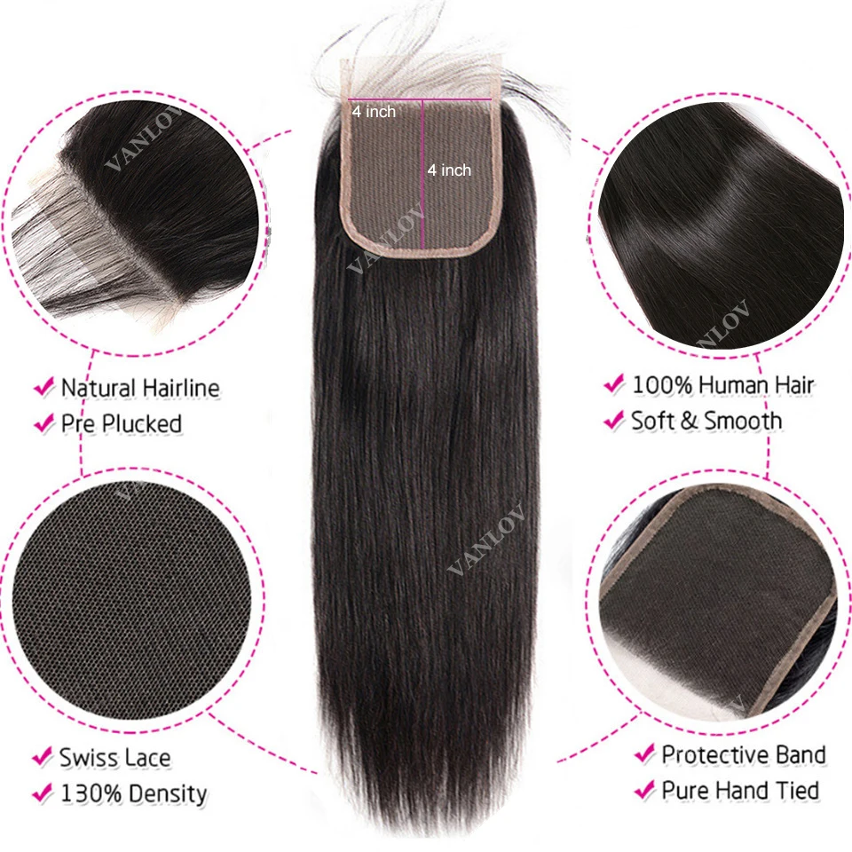 Ванлова прямые человеческие волосы пряди с закрытием бразильские вплетаемые волосы пряди с закрытием предварительно вырезанные 4x4 Волосы Remy удлинитель