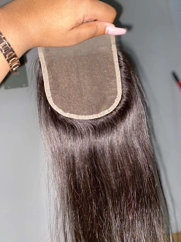 Только что сделал из него парик, закрытие выглядит как мини фронтальная, это красиво! Пучки мягкие, мои предпочтения 3 пучка и застежка отлично подходят для естественного вида. Определенно рекомендую волосы