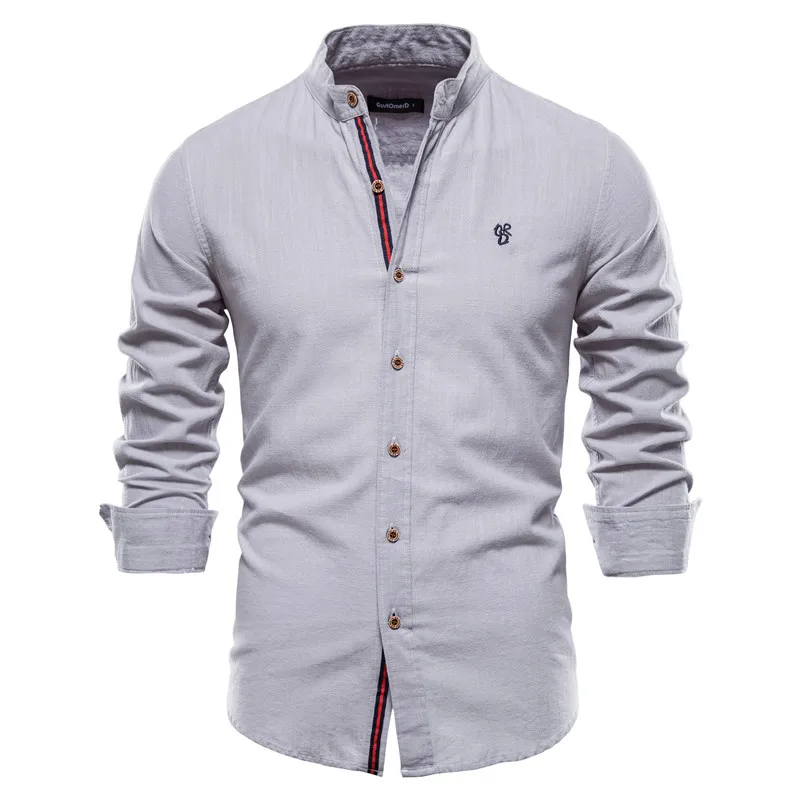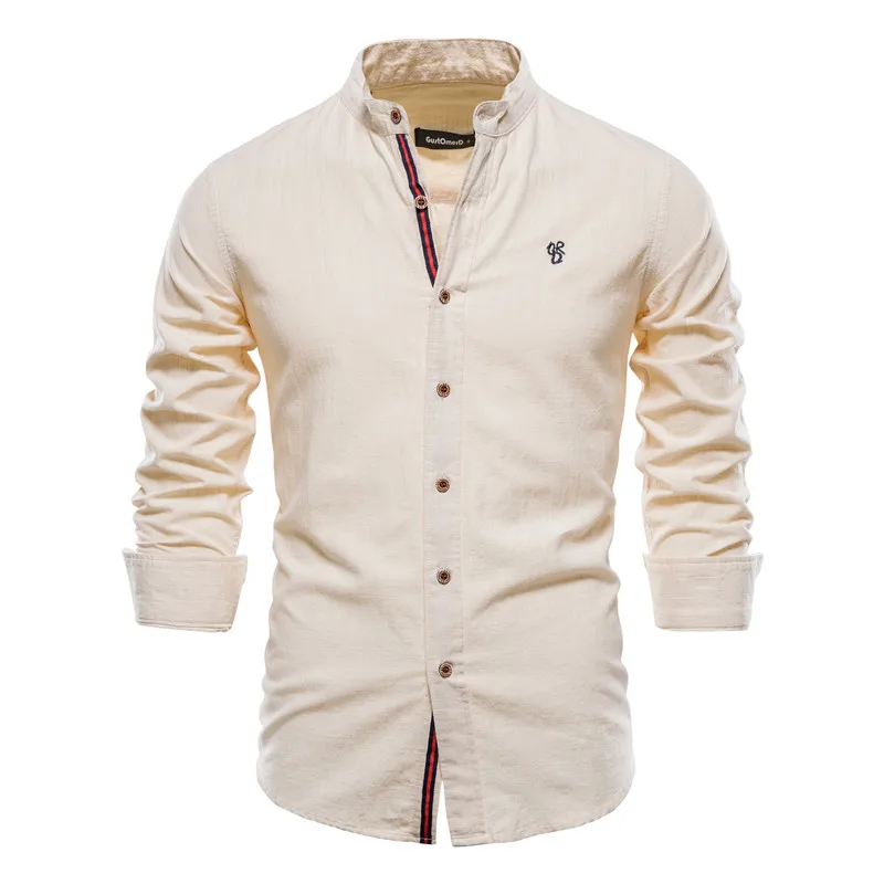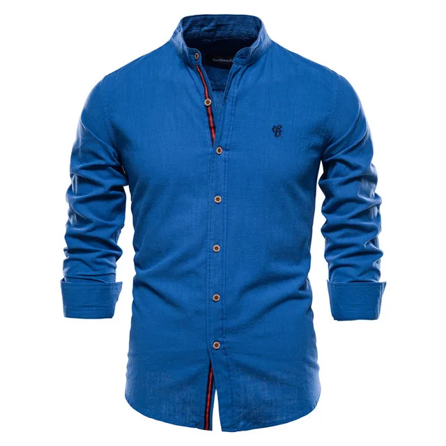 Рубашка мужская с воротником-стойкой, хлопково-Льняная блуза с длинными рукавами, Повседневная сорочка, топ, однотонная, весна-лето 2021