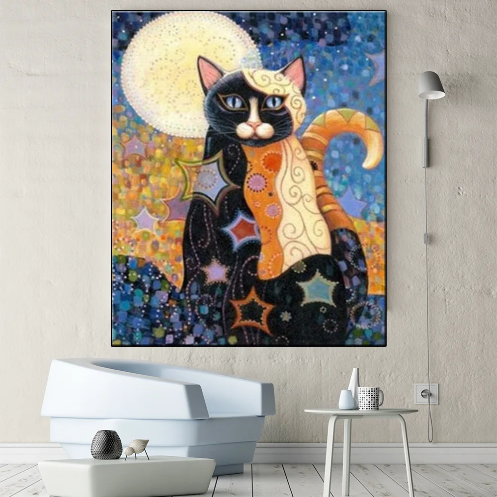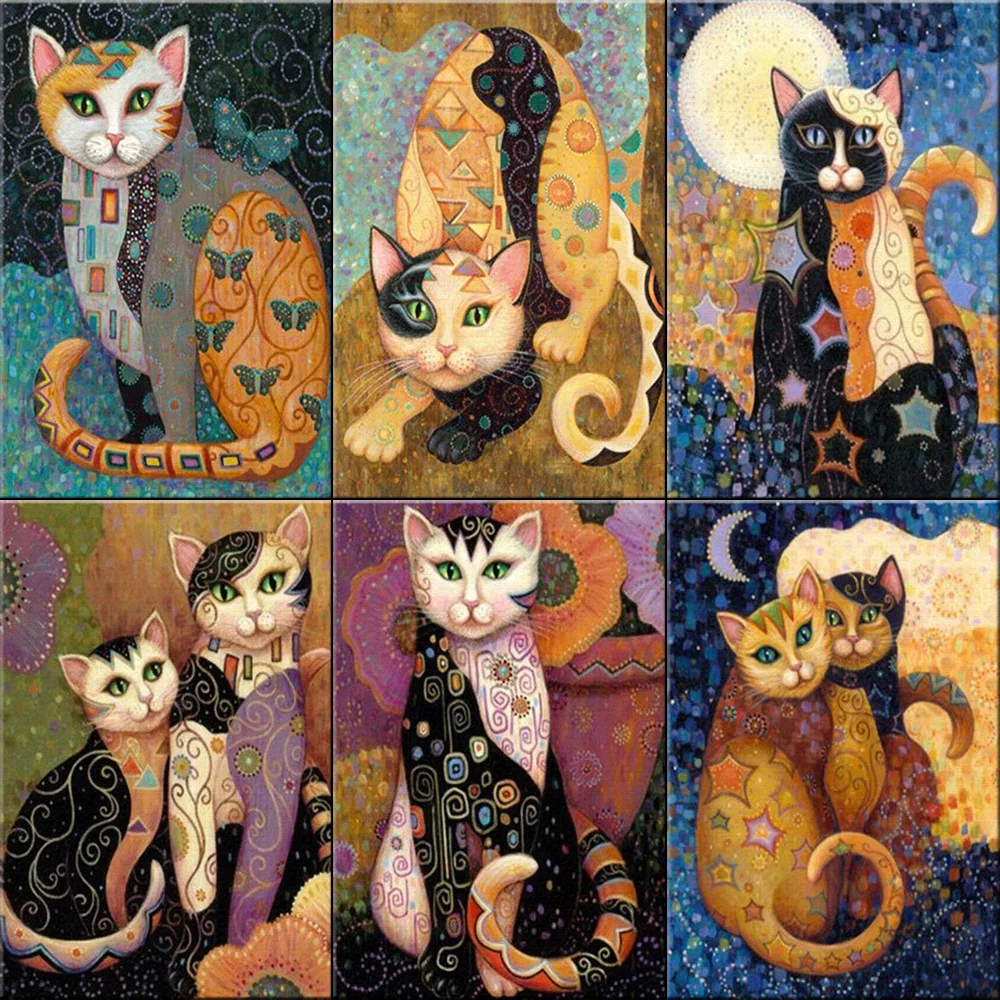 Алмазная живопись, полноразмерная мультяшная абстрактная кошка, алмазная вышивка с животными, Набор для вышивки крестиком, Алмазная мозаика, подарок для рукоделия