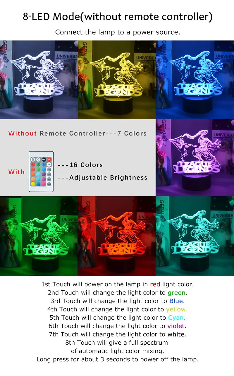 Ночсветильник Лига Легенд из аниме, 3D иллюзия, светодиодная акрило...